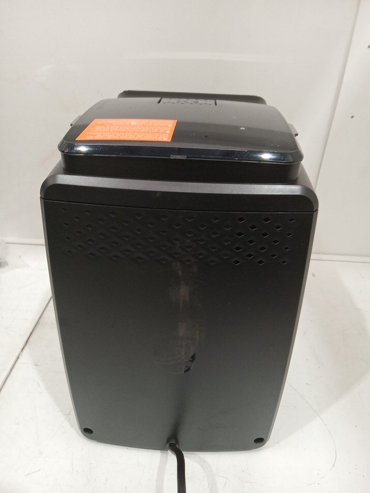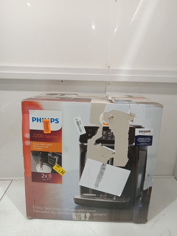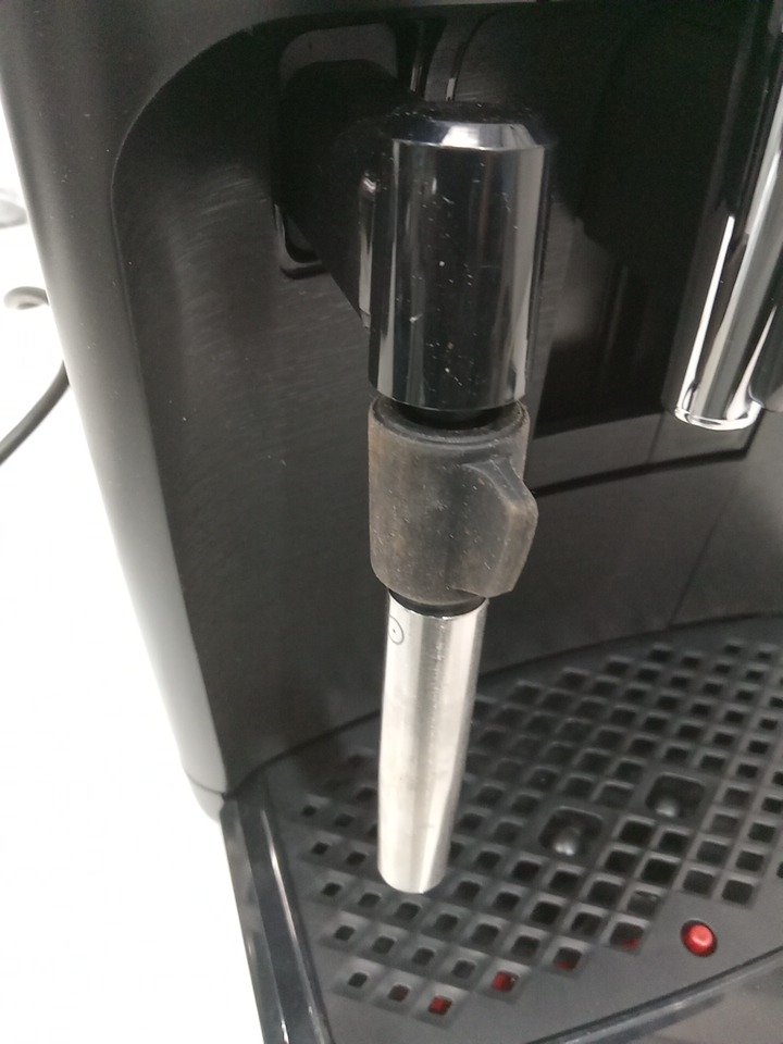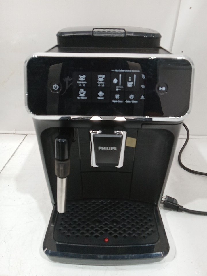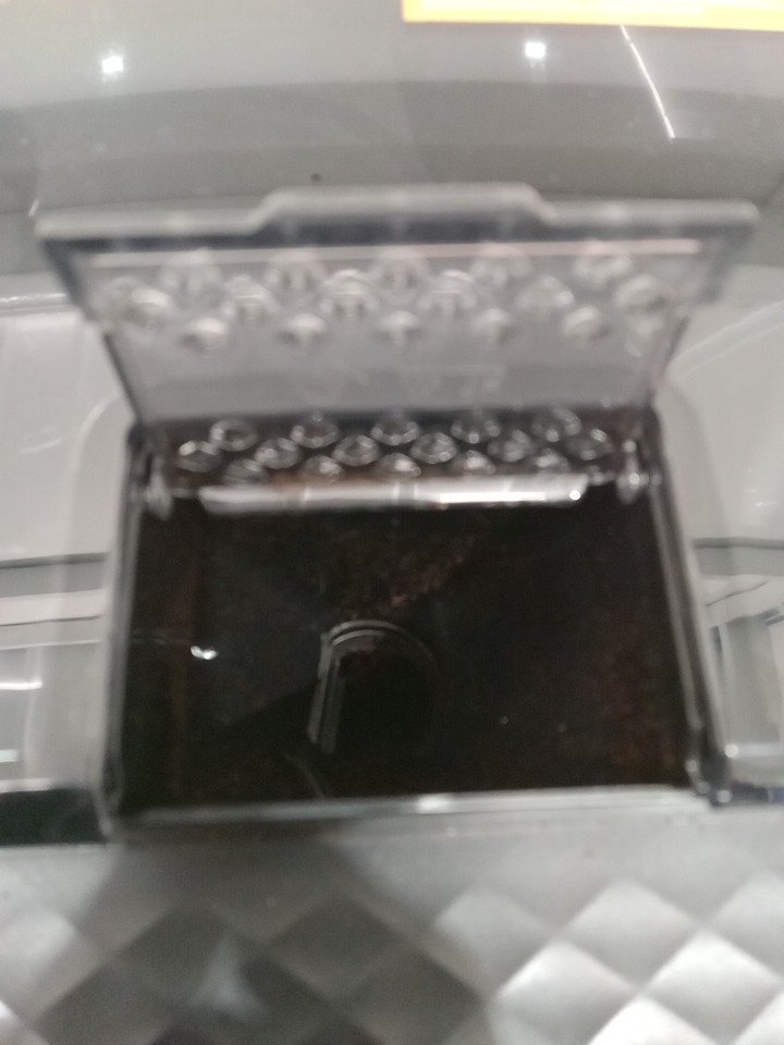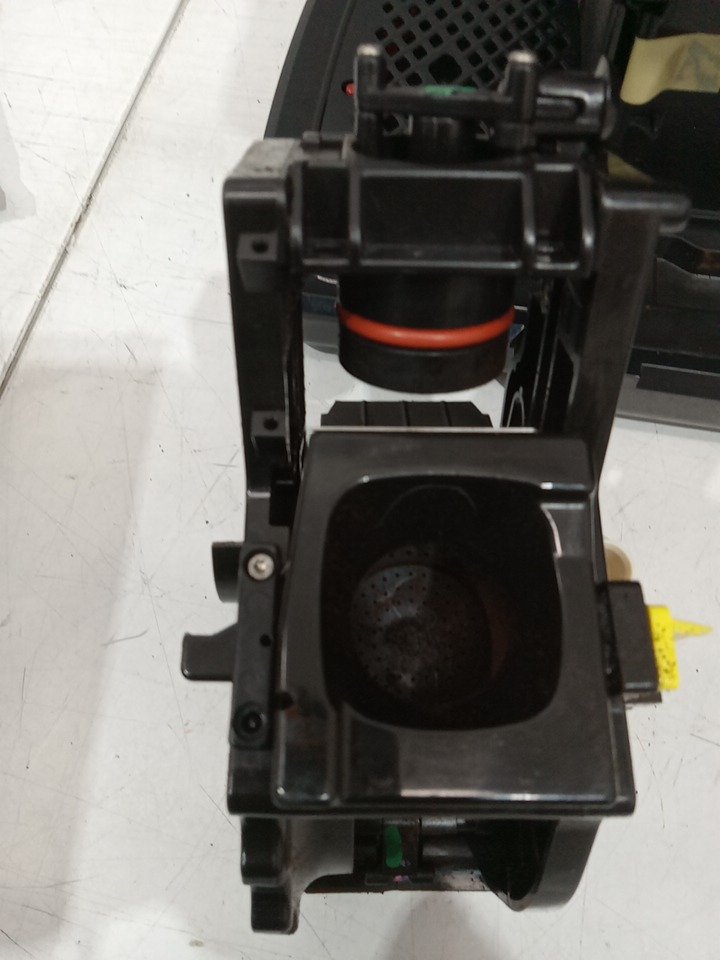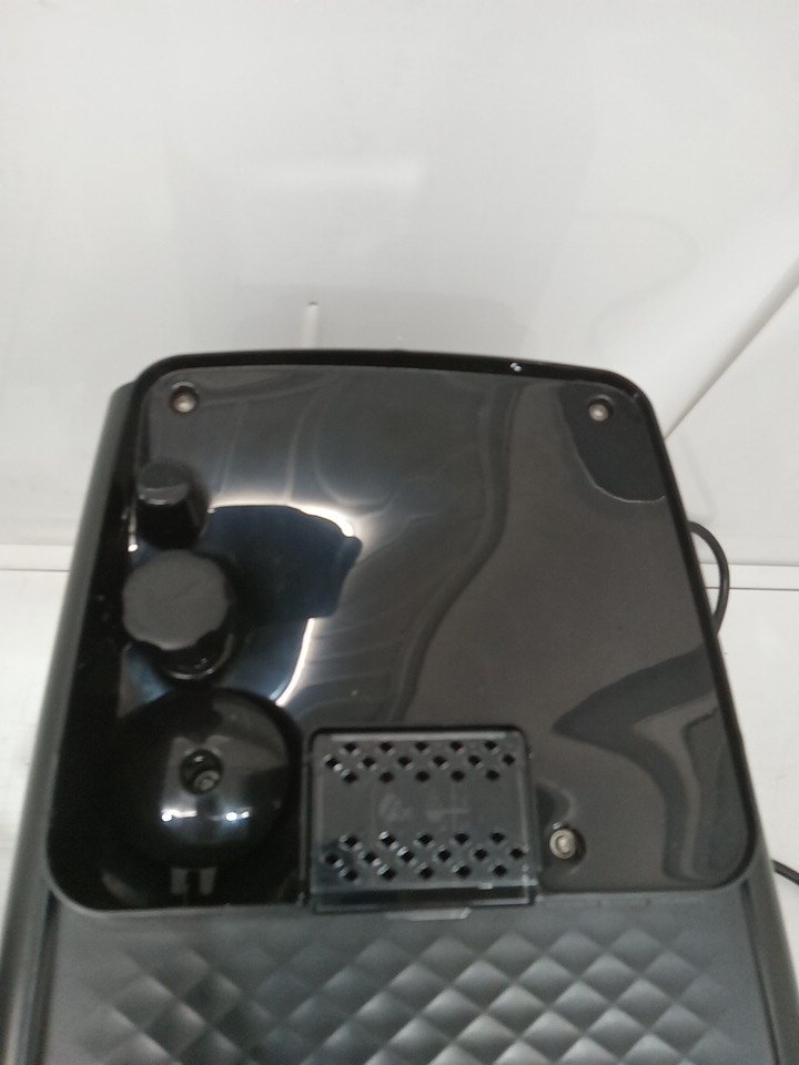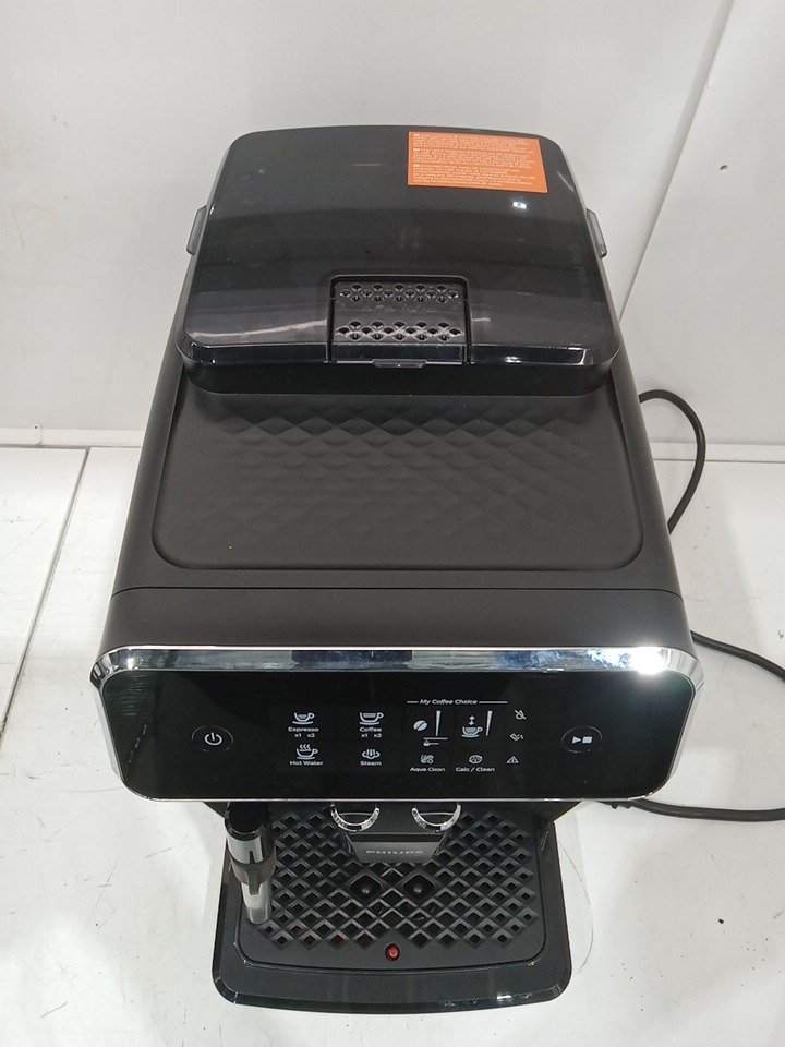 The manual is missing from the original packaging. The aqua filter arrived sealed. There are coffee residues on the top and in the grinder. There are minor scratch marks on the sides and drip tray, and there are water stains on the water tank, all indicating prior use. Tested for basic power only. (Please see photos)