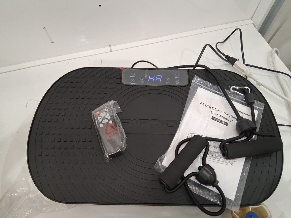 FEIERDUN Vibration Plate Exercise Machine with loop bands and remote control - 330lb max - black (model: fedvp-la)