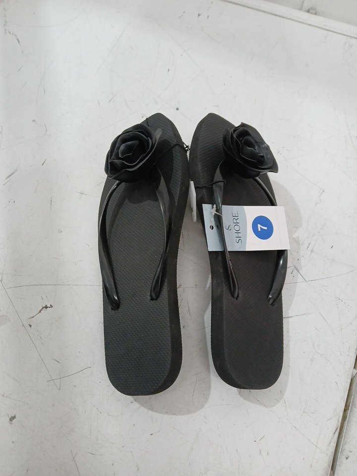 womens Rosette Thong Flip Flop Sandals- size 7 - black