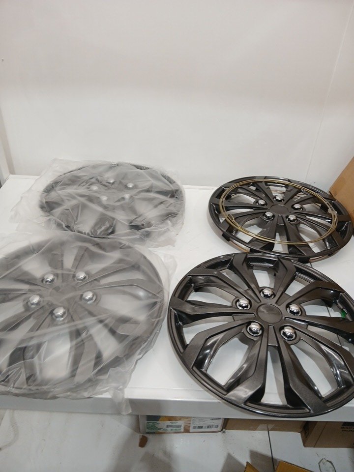 4PK Pilot Automotive Universal Fit Spyder Wheel Cover - 15" - GUNMETAL GREY (MODEL: bfsk-wh555-15gm-b.fba)