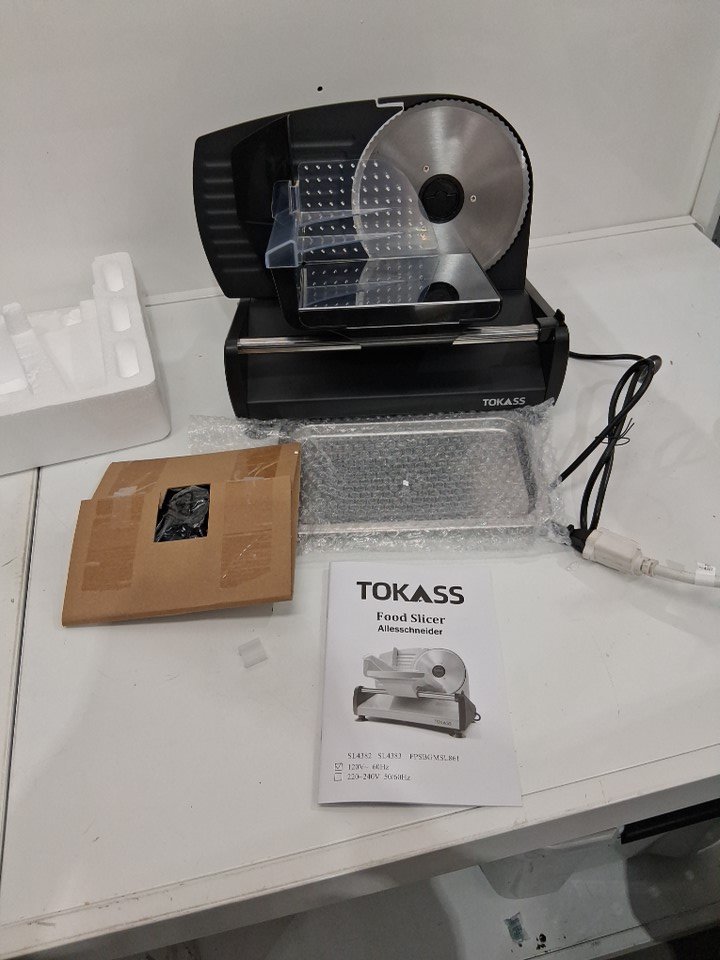 TOKASS Electric Deli Food Slicer with Removable 7.5’’ Stainless Steel Blade, Adjustable Thickness Meat Slicer for Home Use, Child Lock Protection - SILVER - (MODEL:sl4383)