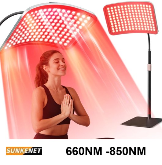 sunkenet Red Light Therapy Lamp with Stable Stand, 660nm and 850nm Infrared Pannel - 11" x 8.7"x 50" - black
