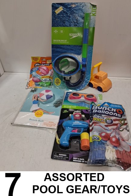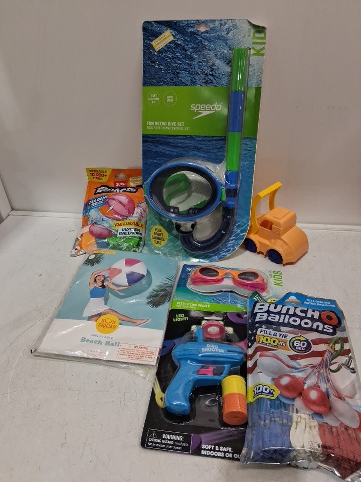 7 assorted kids pool gear and pool toys - various sizes /colors