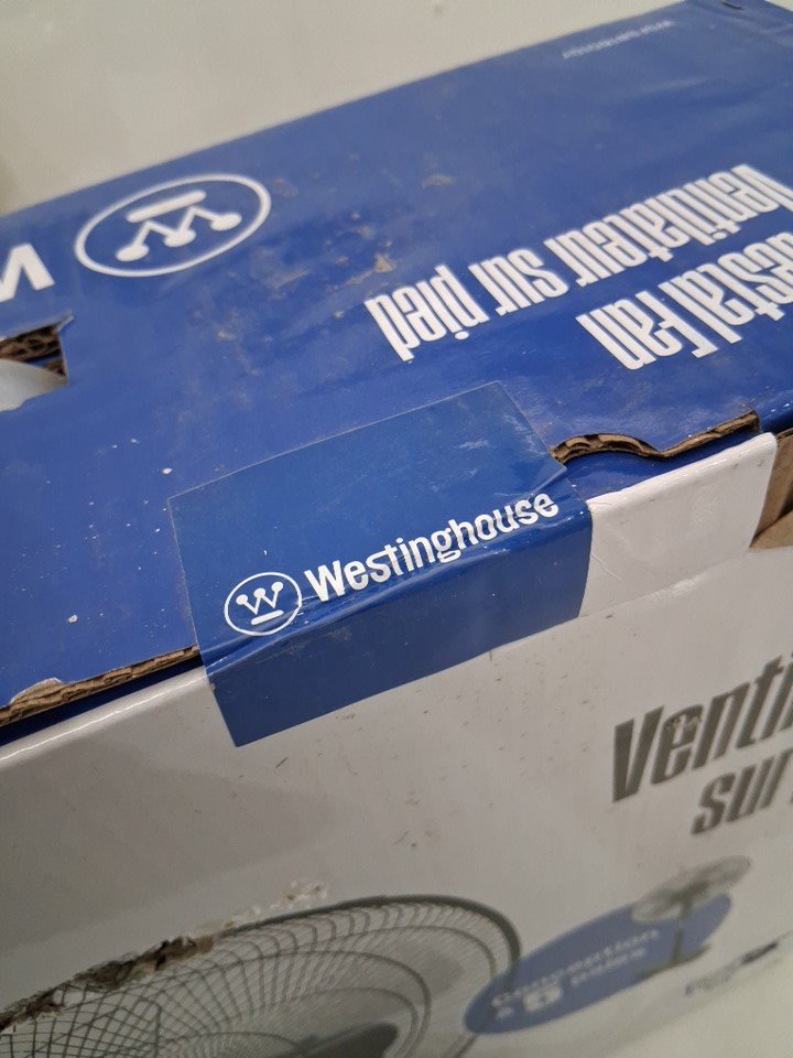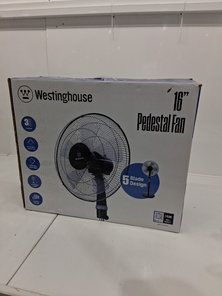 westinghouse adjustable height oscillating pedestal fan - 16" - black/blue (model: WSFSB1601BU)