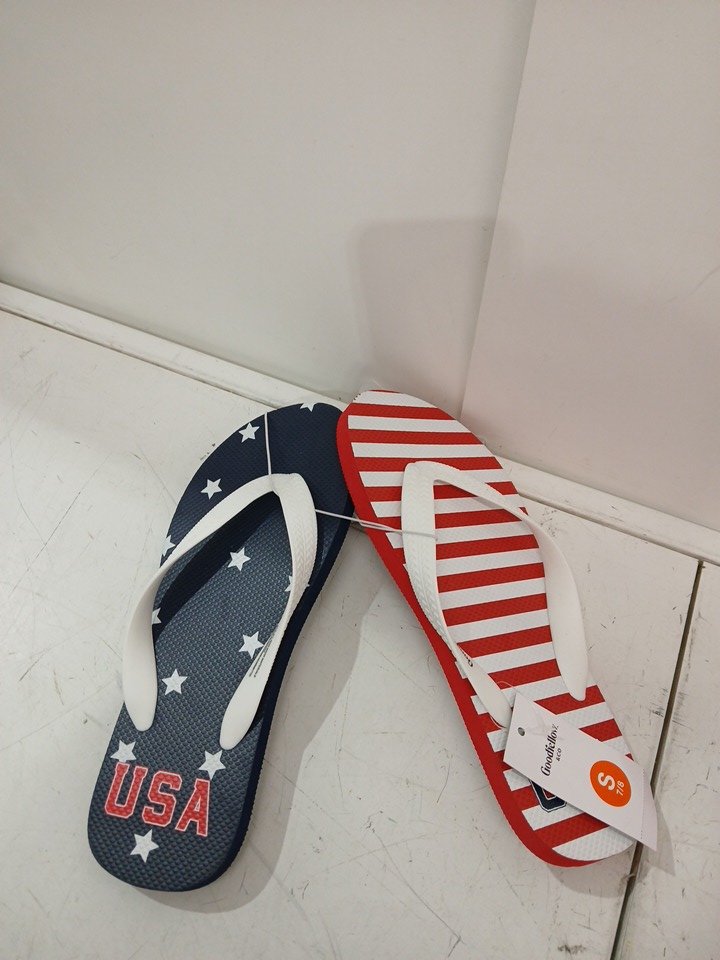 men's GOODFELLOW & CO american thOng flip flop - size 7-8 (SMALL)- red stripe