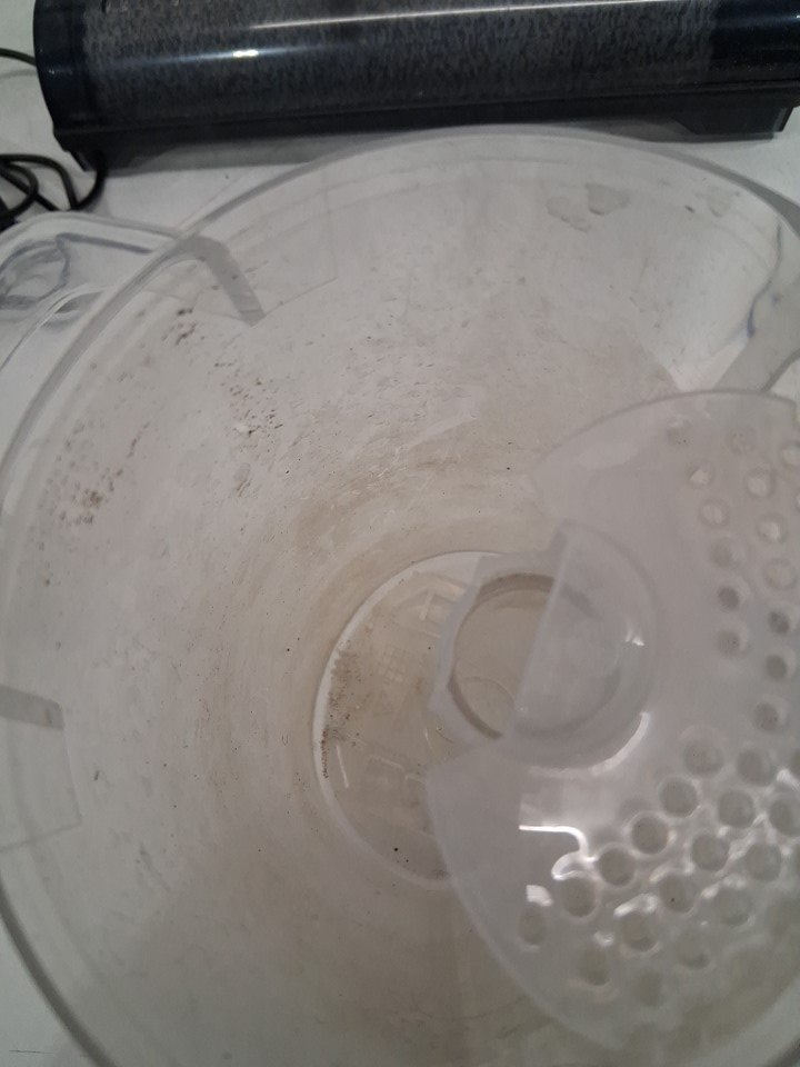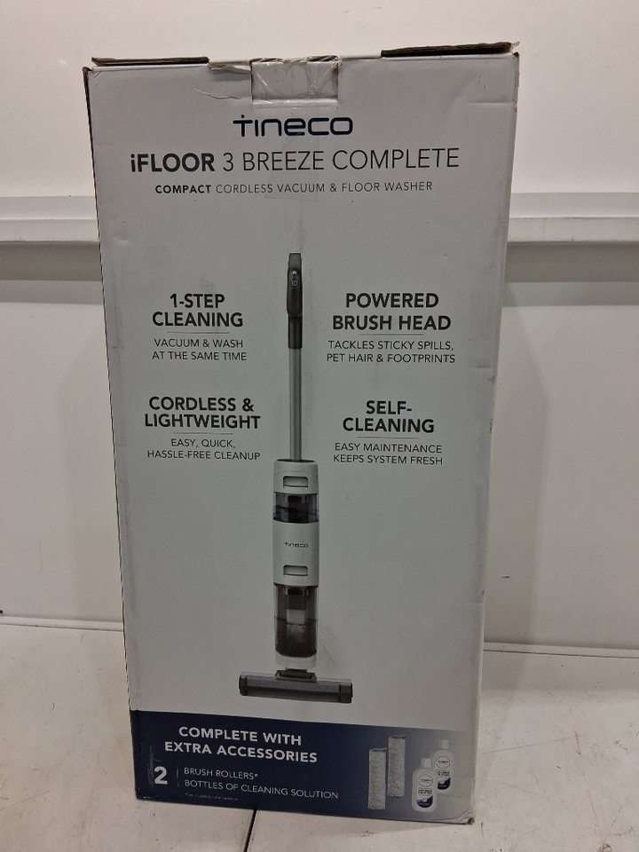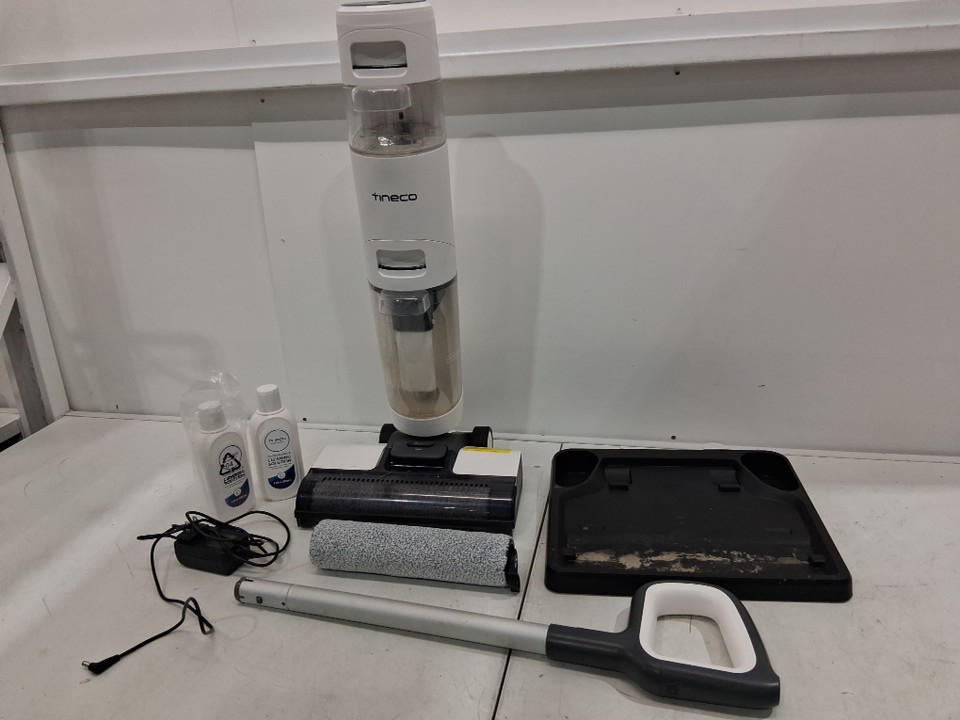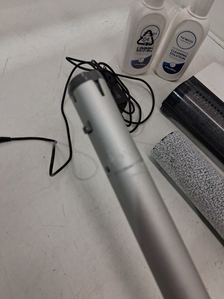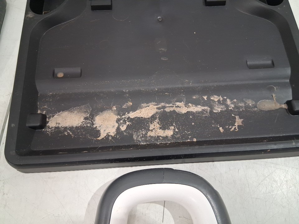 There is some light dirt on the stand for vacuum, the roller on vacuum has some dirt from use. One of the cleaner bottles is open but only looks like a small amount is use, tested for power use only, see photos.