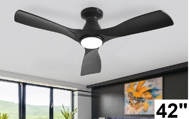 dimmable Flush Mount Low Profile Ceiling Fan with remote control - 3 blade - 42" - black