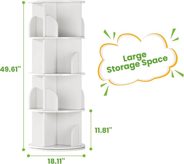 folinala 4-tier 360° spinning rotating bookshelf tower - 50" height - EGGSHELL white