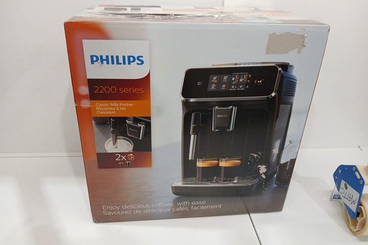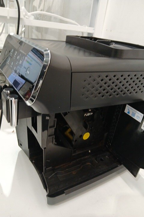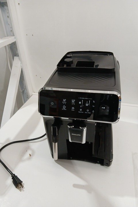 Tested for power only, water is required to test further. Back panel appears loose and not fully attached to the sides at the top and may need some adjusting. Dried coffee grounds inside large drip tray and inside machine, notable coffee aroma in the machine, and filter loose and open, will likely need replacing. This item will not be eligible for our warranty unless the machine was descaled & cleaned using the manufacturer's instructions. If you require additional time for our warranty in order to clean these machines, please reach out to us before your specified warranty deadline. **Due to the high sensitivity and frequent upkeep of operation on these units, additional cleaning may be required. If not descaled with model specific cleaning product, the units may become clogged and will cause potential operational issues. Please refer to the manufacturer's operations manual for detailed cleaning instructions.**