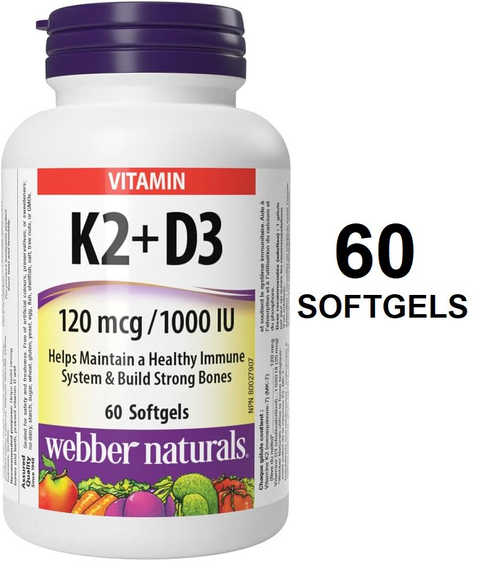 60SOFTGELS Webber Naturals Vitamin K2 with D3 Support Bones, Teeth, and Immune Function