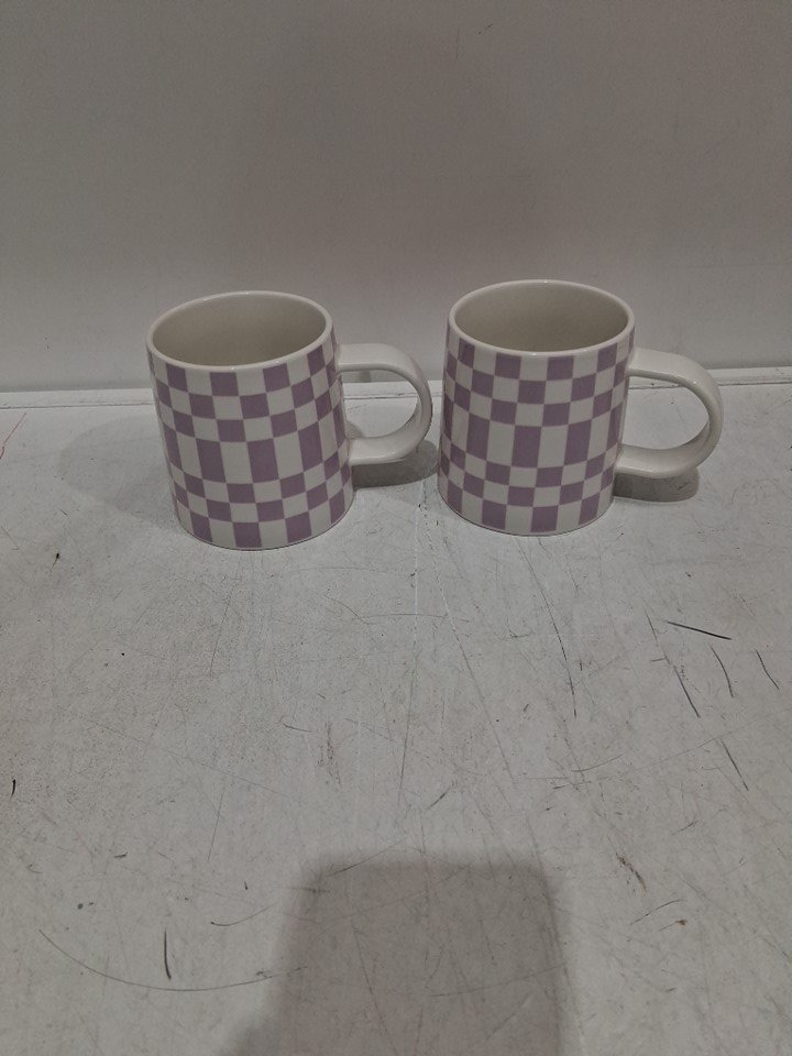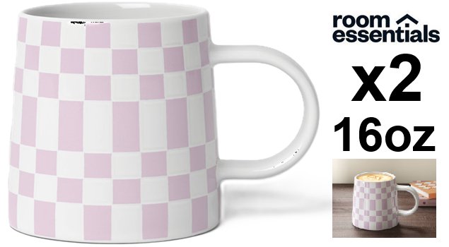 2 Room Essentials Stoneware Checkerboard Mug - 16oz - purple /white