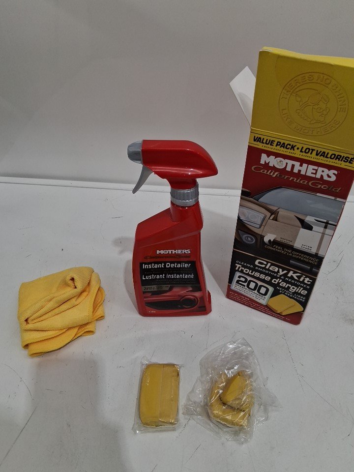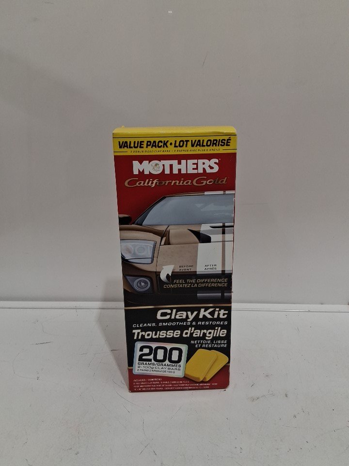 one clay piece is in a different packaging material. liquid seems full or near full, but unable to open to verify.