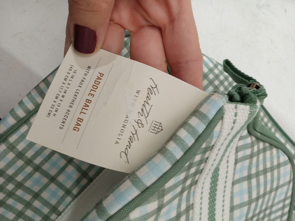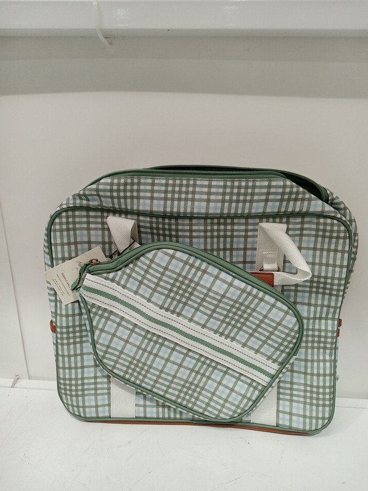 2PC Hearth & Hand with Magnolia Plaid Pickleball Bag & Paddle Cover Set - 16"X13"X7" - Green/Blue