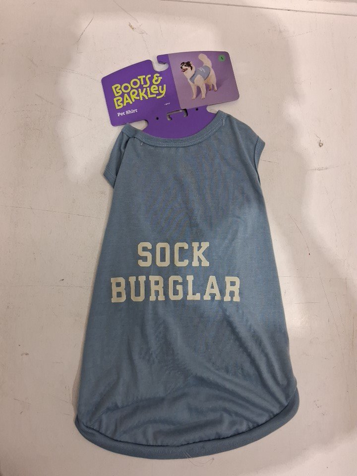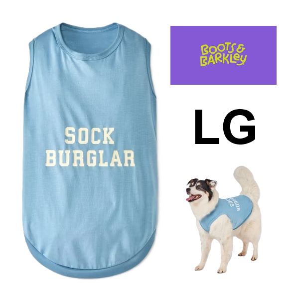 Boots & Barkley Tank Dog Shirt - Sock Burglar - Large - Blue/White