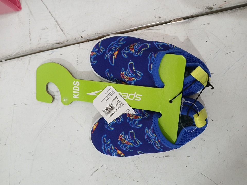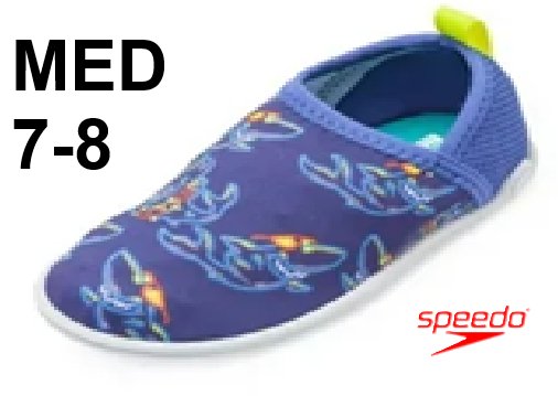 KID'S Speedo Printed Beach Bootie Water Shoes - size medium (7-8)- Neon Shark
