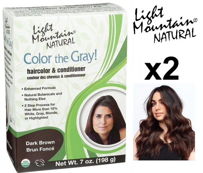 2 light mountain natural color the gray! hair colour & conditioner - dark brown - 198g/each