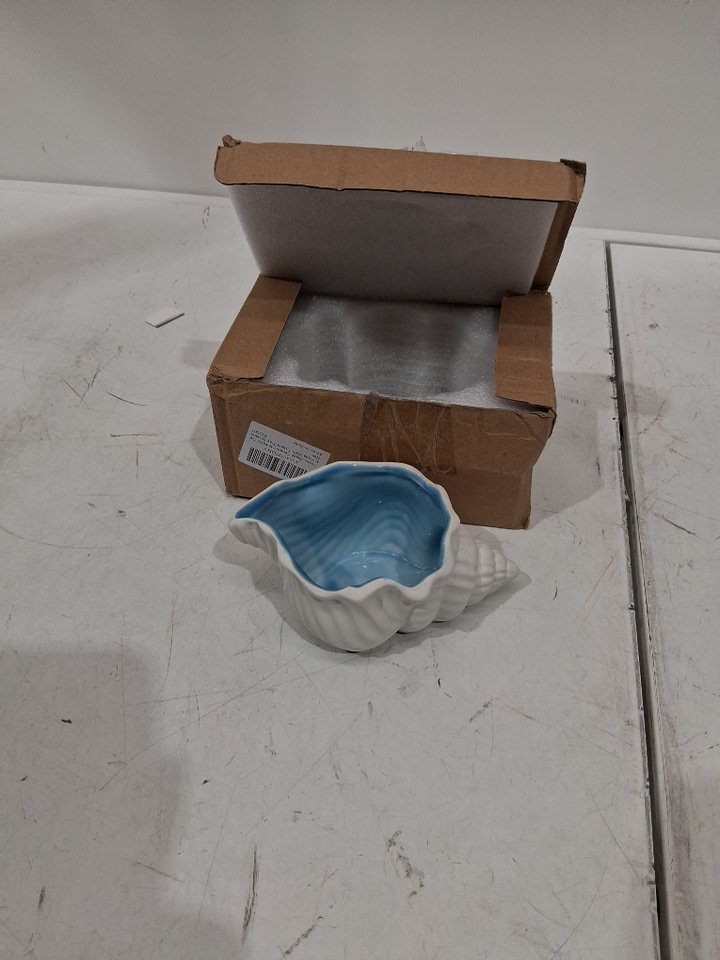 Conch Shape Ceramic Jewelry Tray - 2.2" - white / blue