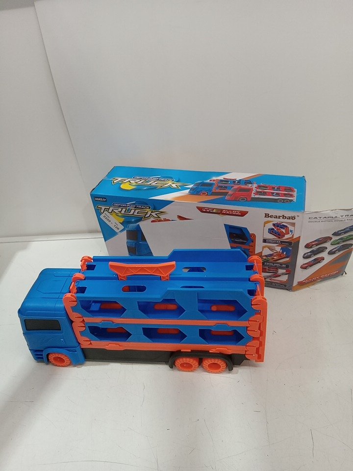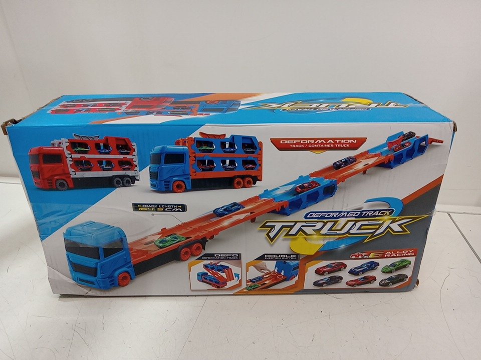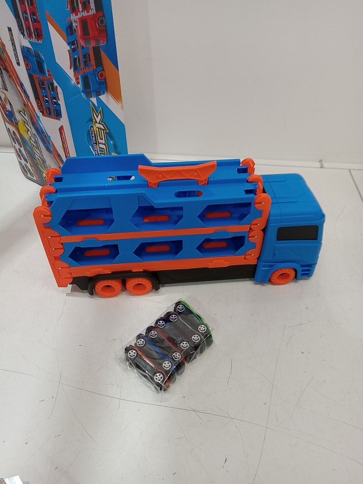 kids Deformed Track TRUCK car carrier toy with 6 cars - Blue/Oragne