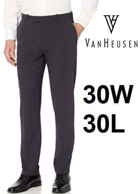 MEN'S VAN HEUSEN FLEX STRAIGHT FIT CASUAL PANTS - 30W x 30L - CHARCOAL GREY