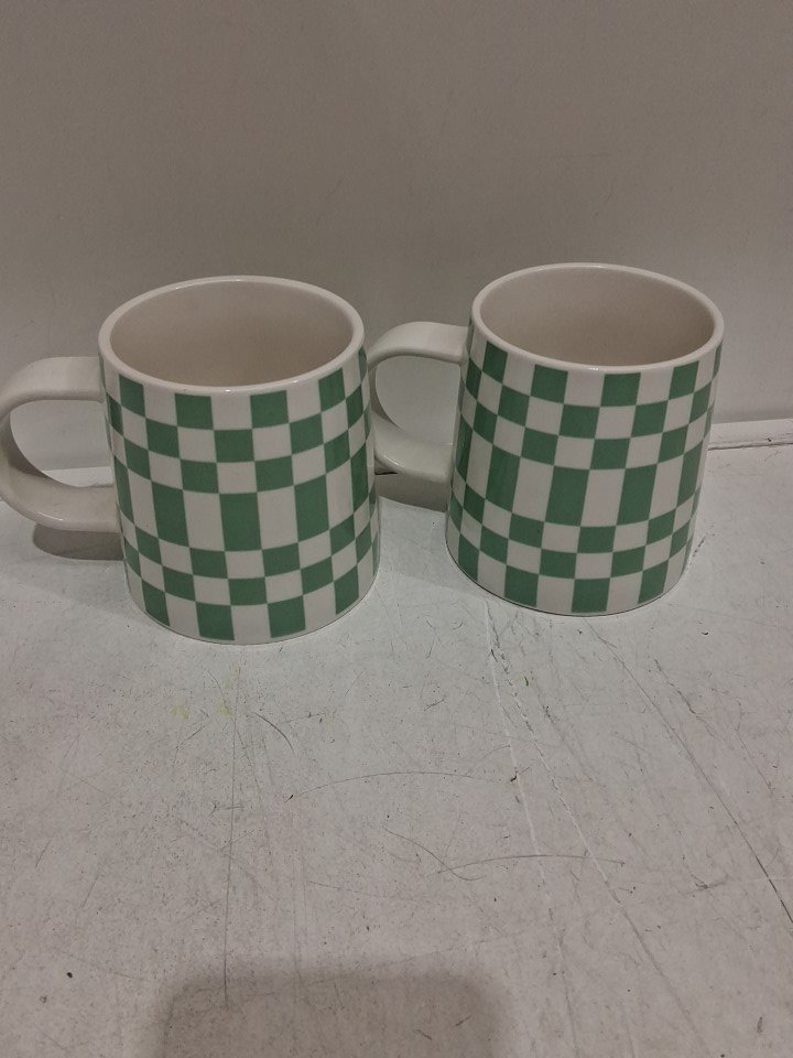 2 Room Essentials Stoneware Checkerboard Mug - 16oz - green/white
