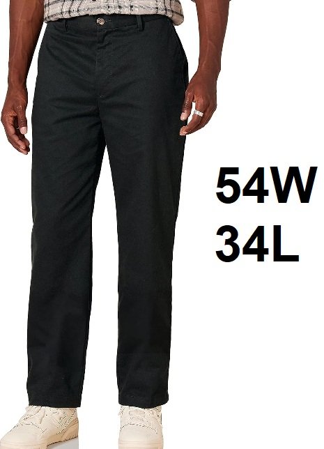 men's amazon essentials Classic-fit Wrinkle-Resistant Flat-Front Chino Pant - 54w x 34l - black