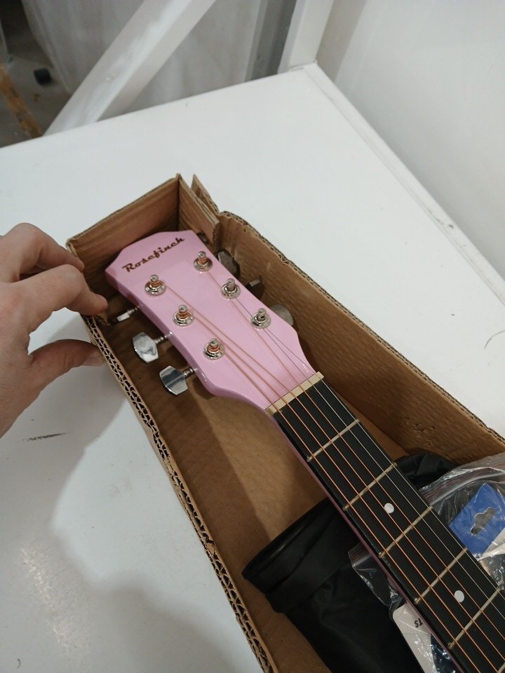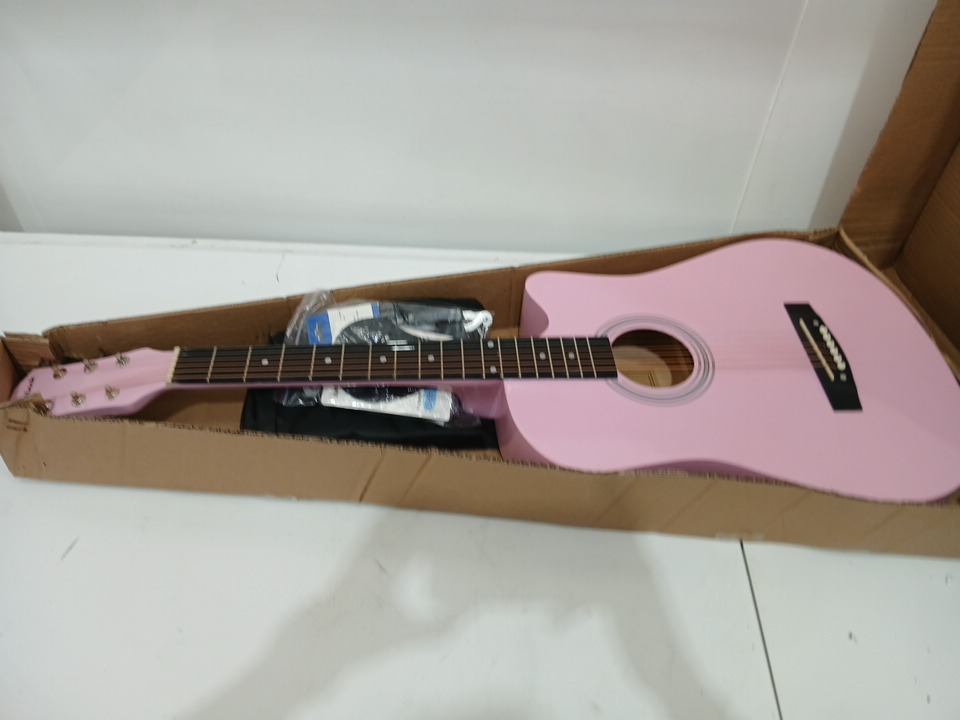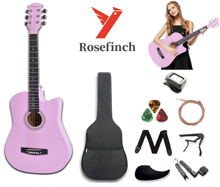 Rosefinch Acoustic Beginner Guitar with tuner, extra string, pics, capo and carrying case - 3/4 Size - 38" - pink (model:AGT16-PK)