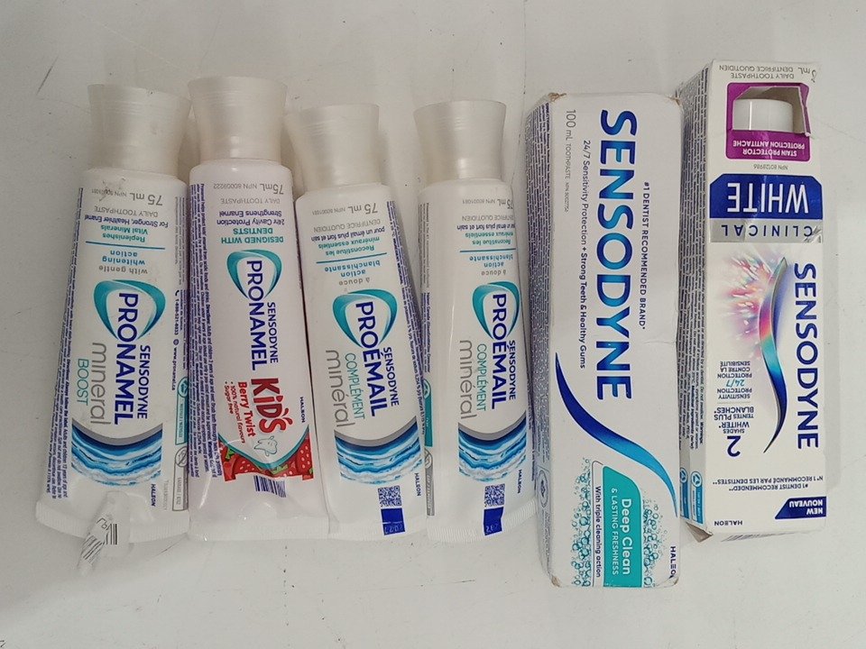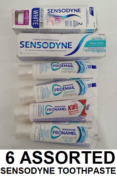 6 assorted Sensodyne toothpastes - assorted types, sizes