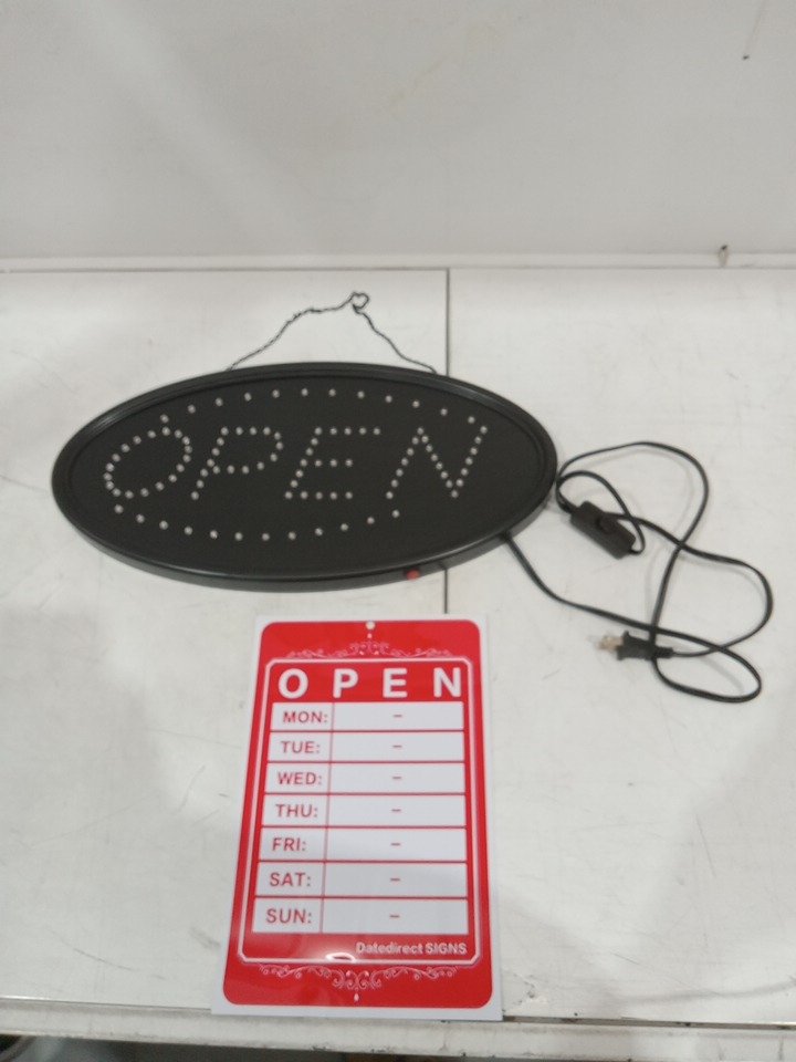 Open LED NEON Sign with ON/Off Animation - 19" x 10" - black