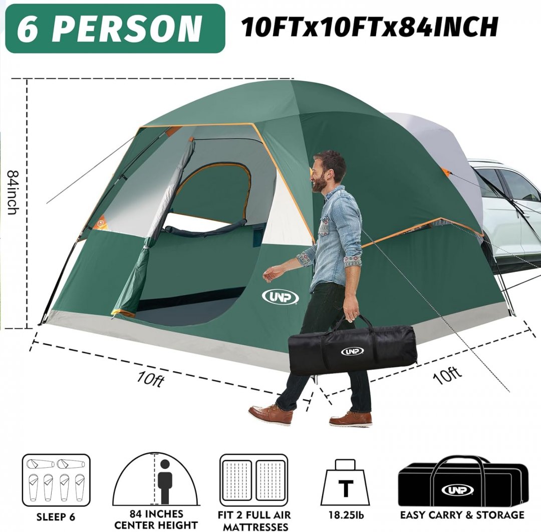 UNP 6 PERSON SUV DOME CAMPING TENT - 10FT X 10FT - OCEAN BLUE (MODEL: UNP1010SUV-OB)