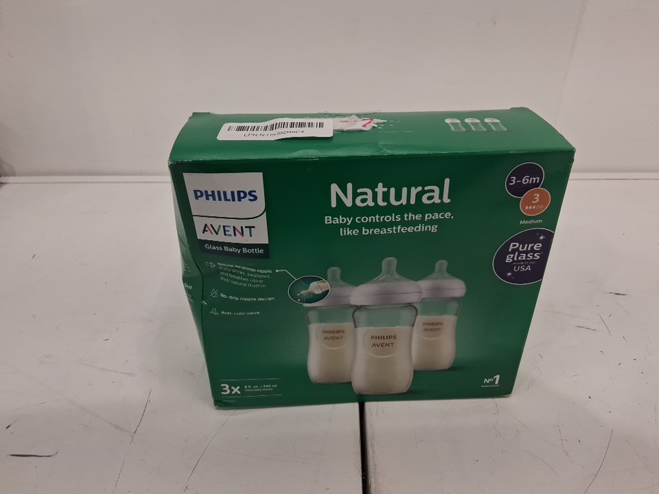 3PK PHILIPS Avent Natural Glass Baby Bottles with Natural Response Nipples - Medium Flow, Flow 3 - 8OZ - WHITE/CLEAR (model:‎ SCY913/03)