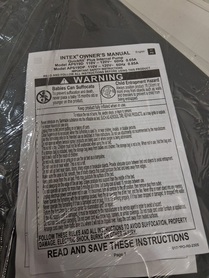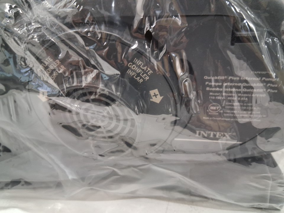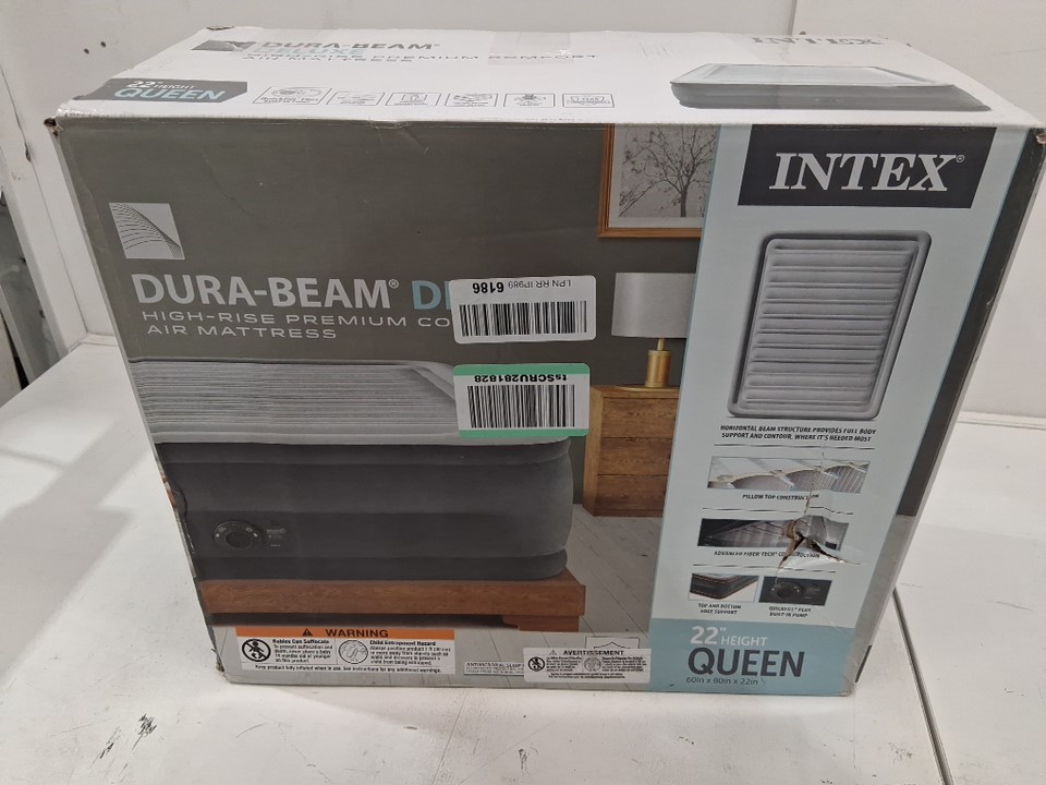 intex DuraBeam Deluxe Comfort Plush Air Mattress with Built in Electric Pump - QUEEN - 22"H - grey/dark blue (model: ap619d)