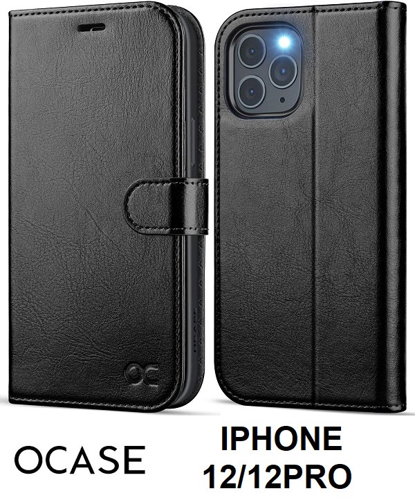 OCASE leather flip wallet phone case with RFID blocking - For IPHONE 12/12pro - Black