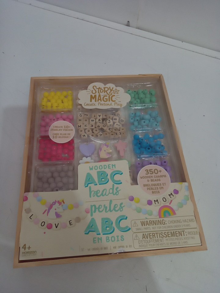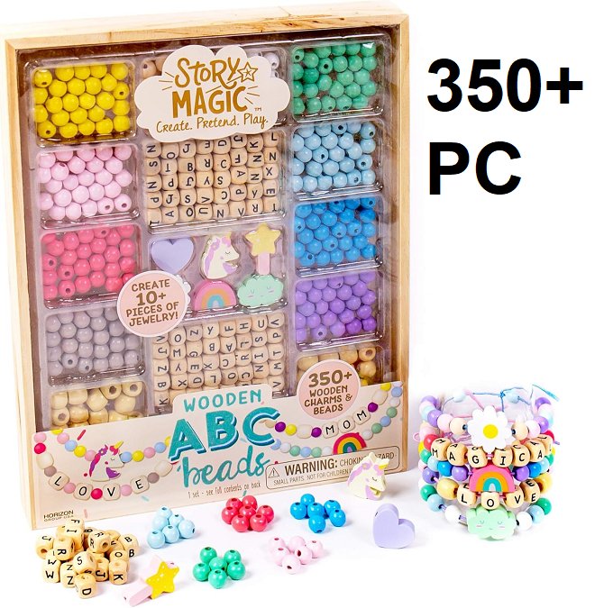 350+pc Story Magic Premium Wooden ABC Bead Kit -assorted size - assorted colors