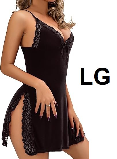 women's cripom thin strap Sexy lingerie nightgown - large - black