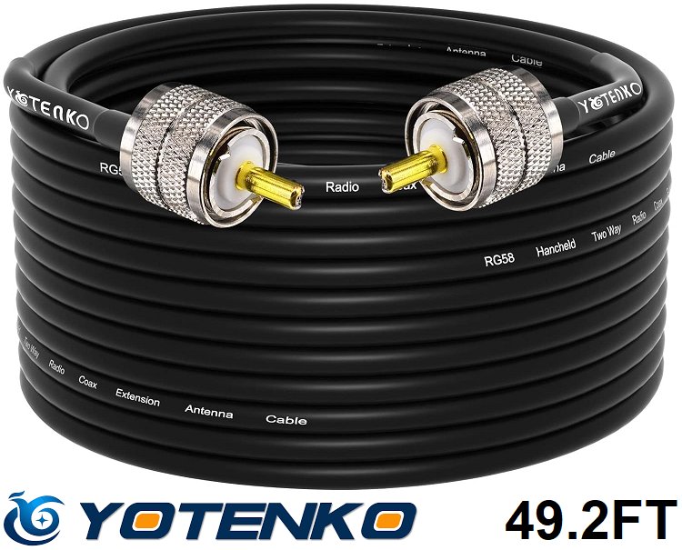 yotenko male to male low loss coaxial cable - 49.2ft rg58 uhf pl-259 - black