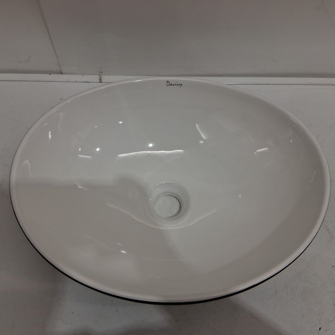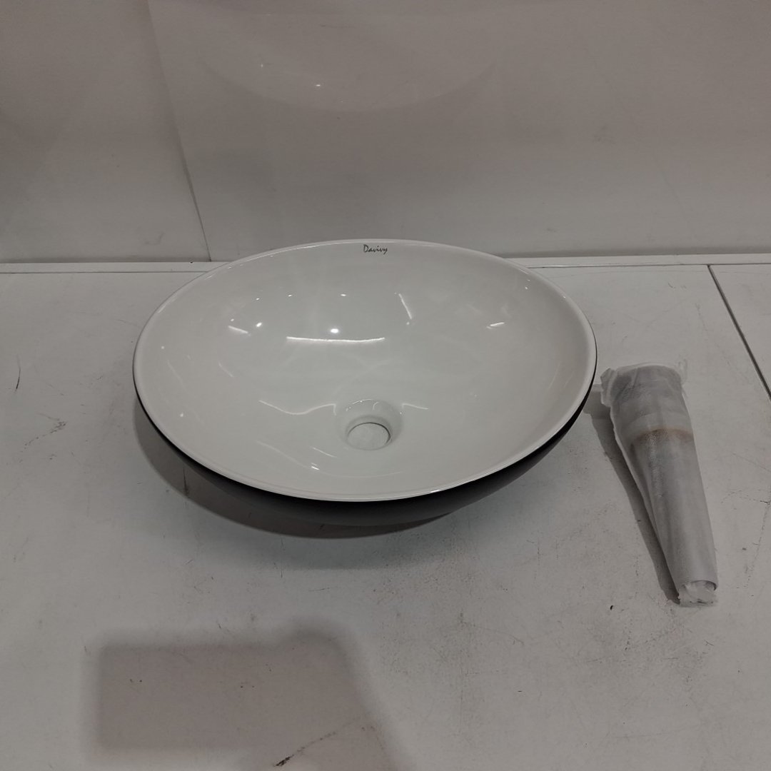 Davivy ceramic Oval Bathroom Vessel Sink with Pop Up Drain - 15.7'' X 13.4'' - matte black/white (model: ‎DS-1170)
