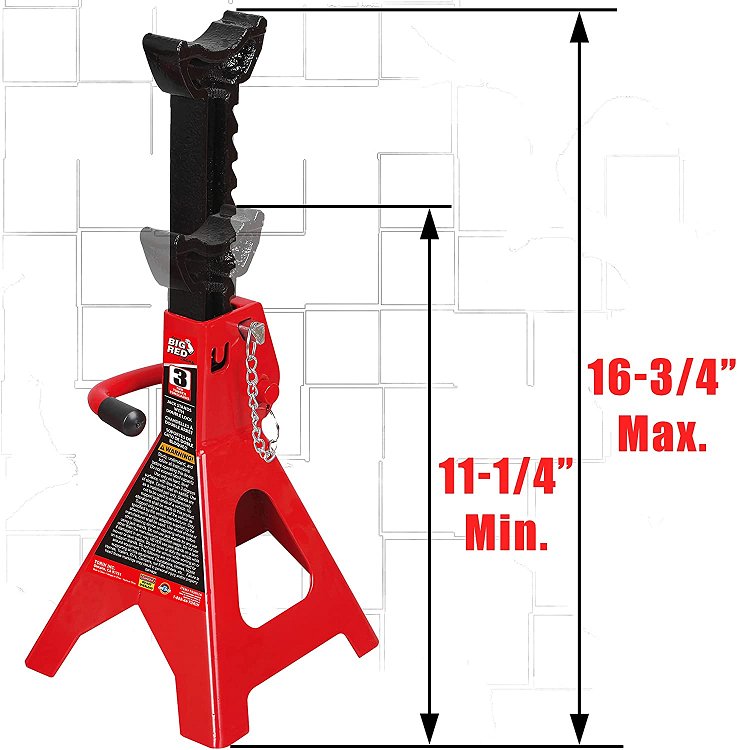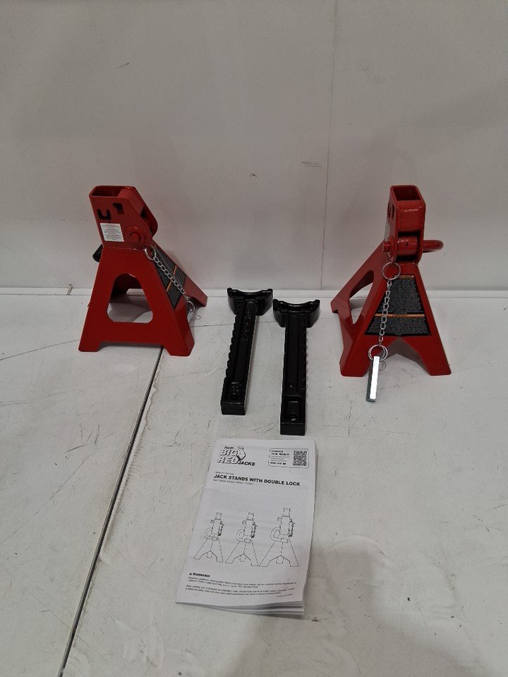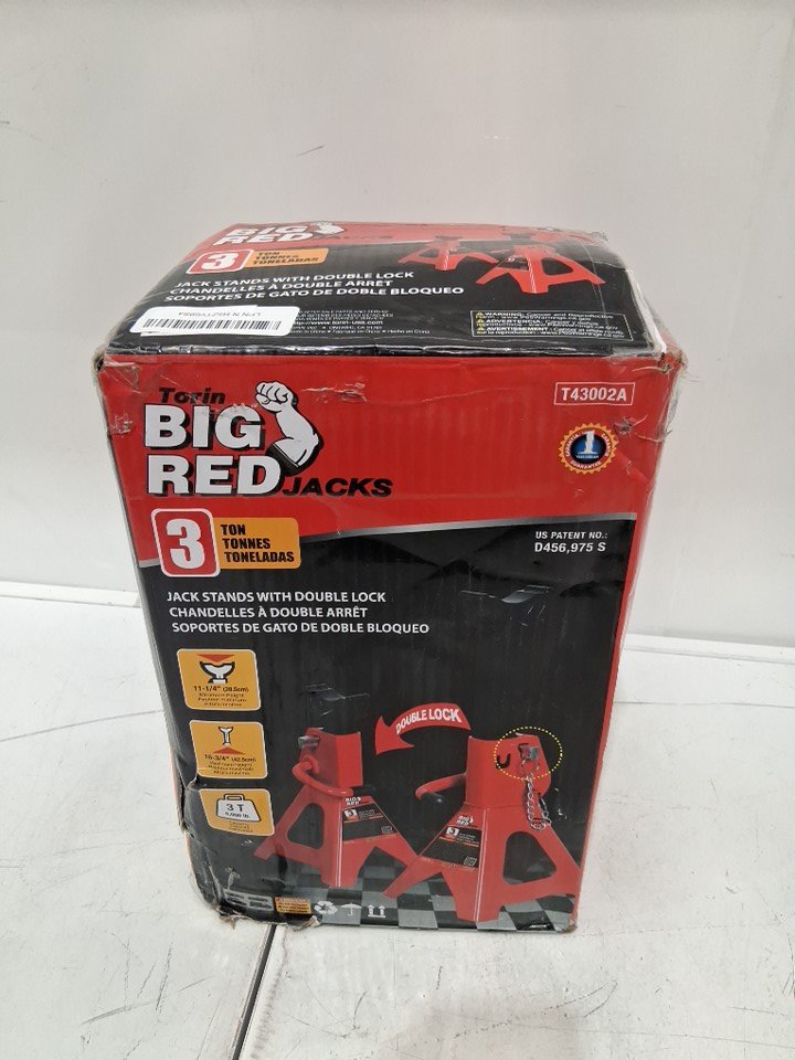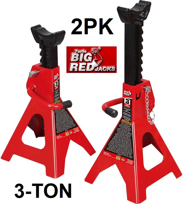 2PK TORIN BIG RED STEEL JACK STANDS, DOUBLE LOCKING - 3 TON (6,000LB CAPACITY) - RED (MODEL:T43002A)