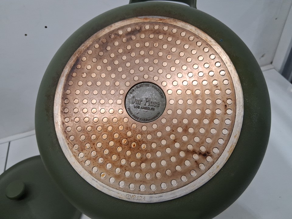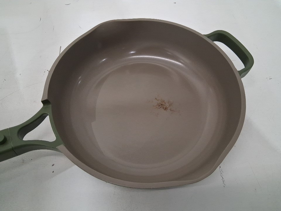 There is a small stain on the surface of the pot and some burn marks on the bottom indicating some previous use, but appears to be in good condition otherwise - see photos.
