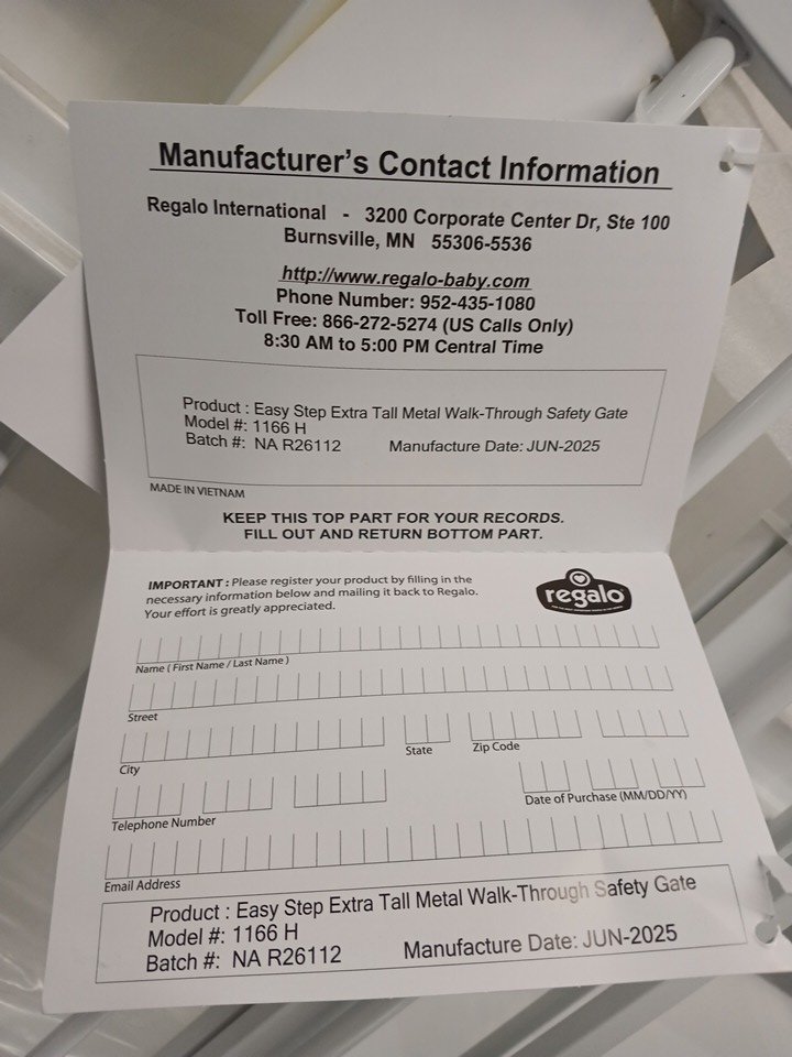 REGALO EASY STEP WALK-THRU METAL SAFETY GATE - 36" x 29" - 36.5" - WHITE - (MODEL: 1166HDS)