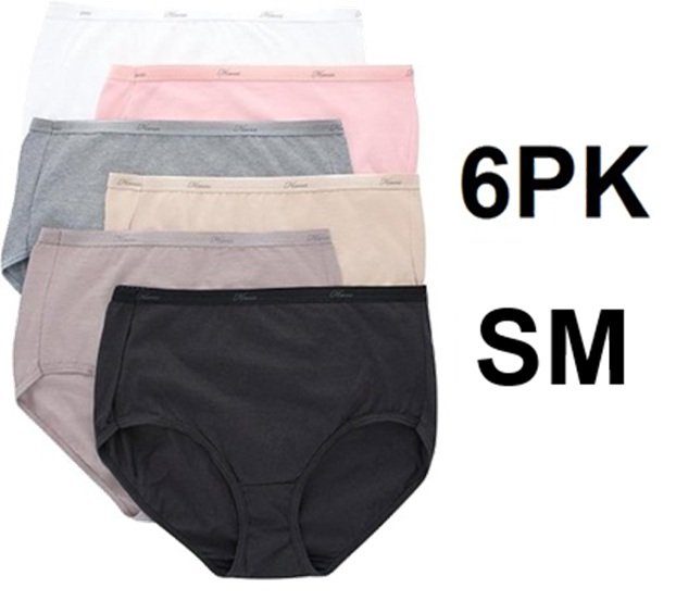6pk womens hanes cotton tagless briefs - SMALL - ASSORTED COLOURS