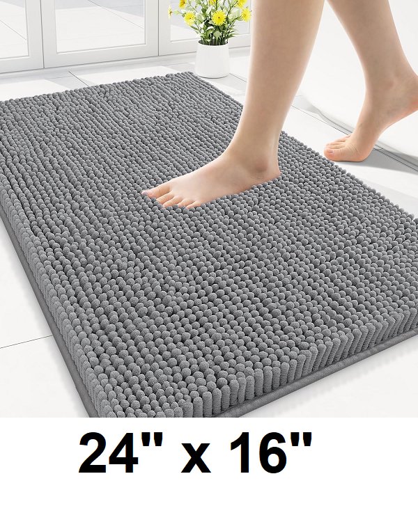 Olany luxury chenille bath mat - 24" x 16" - Grey