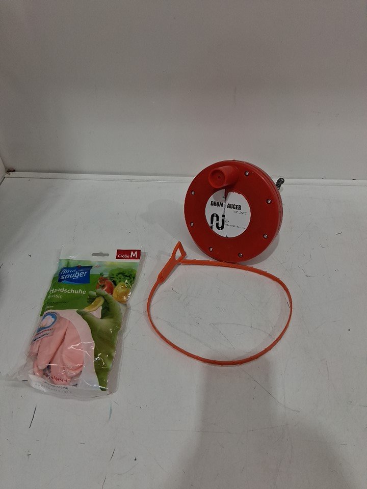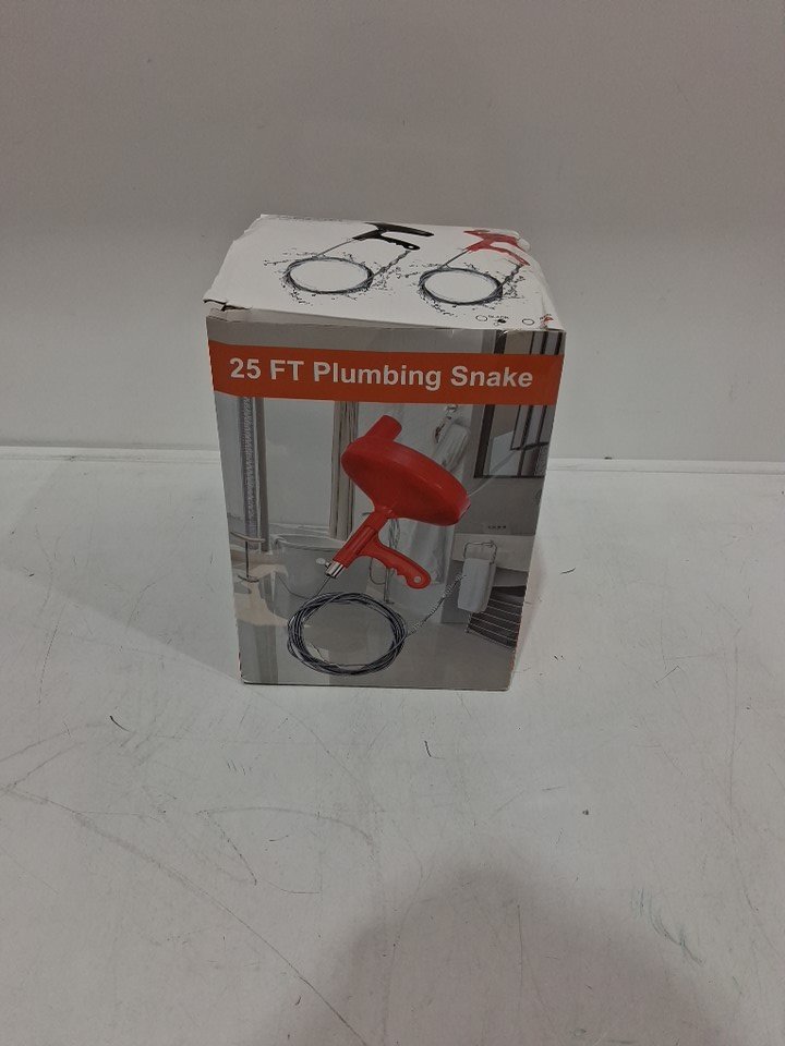 FORLIVESE drain plumbing snake with gloves - for unclogging sinks - 25ft , 1/4" thick - red