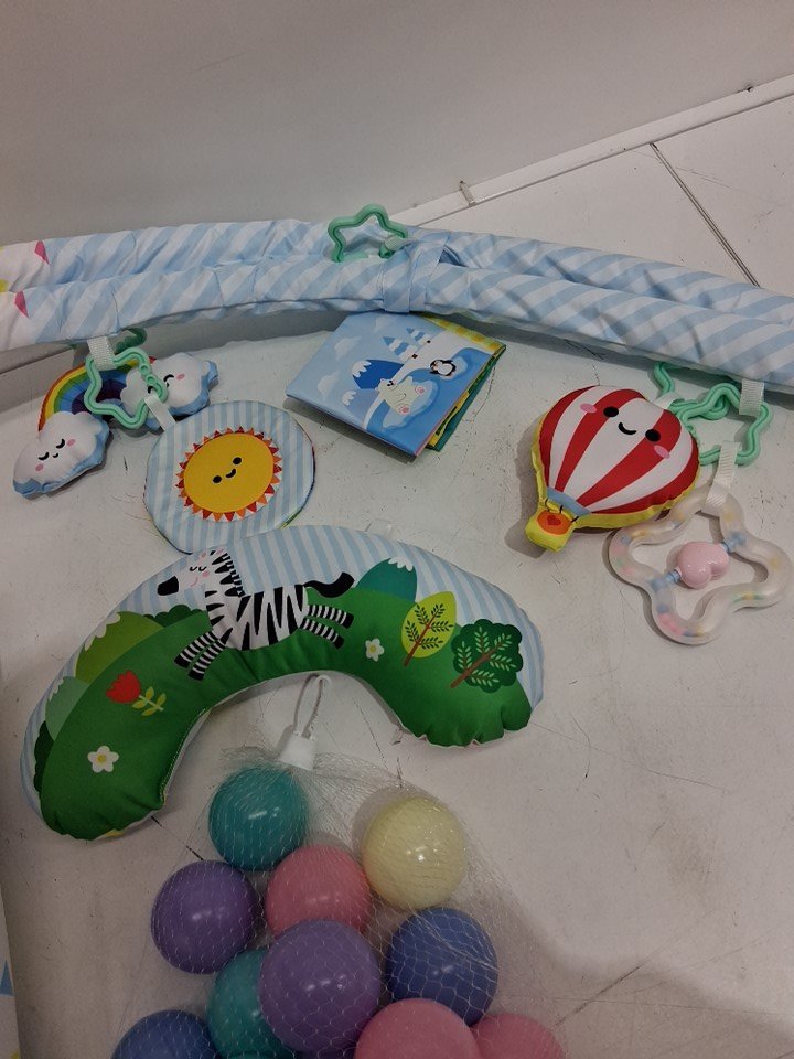 Dr.Rapeti 7-in-1 Baby Play Gym Mat with Ball Pit -Activity Center, Tummy Time, Sensory Exploration, Motor Skill Development - 38.7" x 46.6" x 20" - multicolour