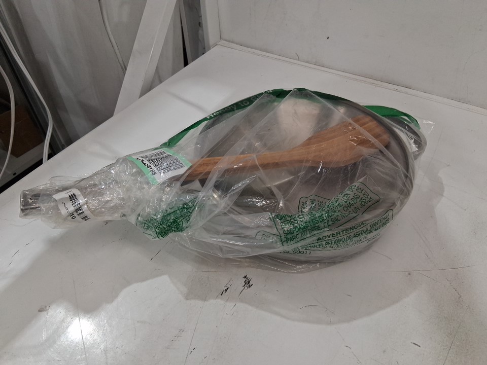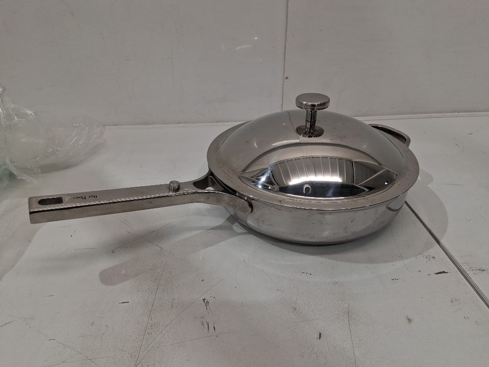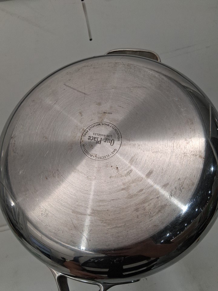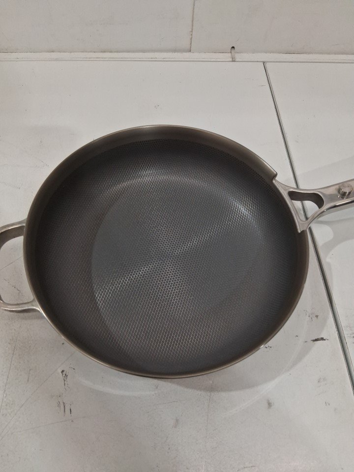 There are some light stains/scuffs on the lid and bottom of the pan indicating some previous use, but appears to be in very good condition - see photos.
