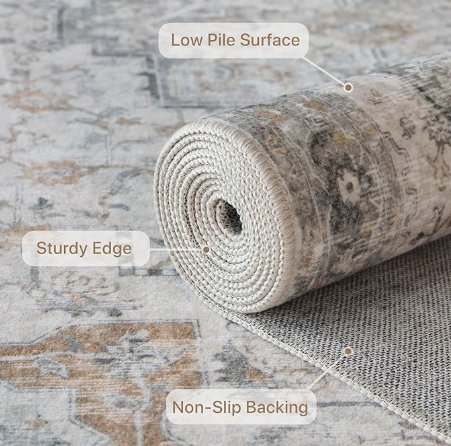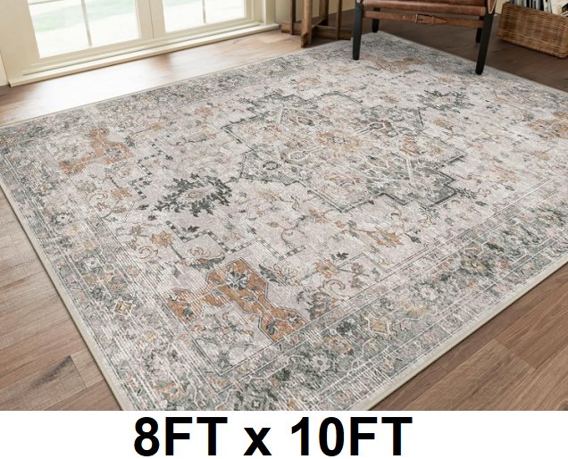 GENIMO LOW PILE Machine Washable Non Slip Vintage Retro AREA Rug - 8FT X 10FT - LIGHT TAUPE, BROWN
