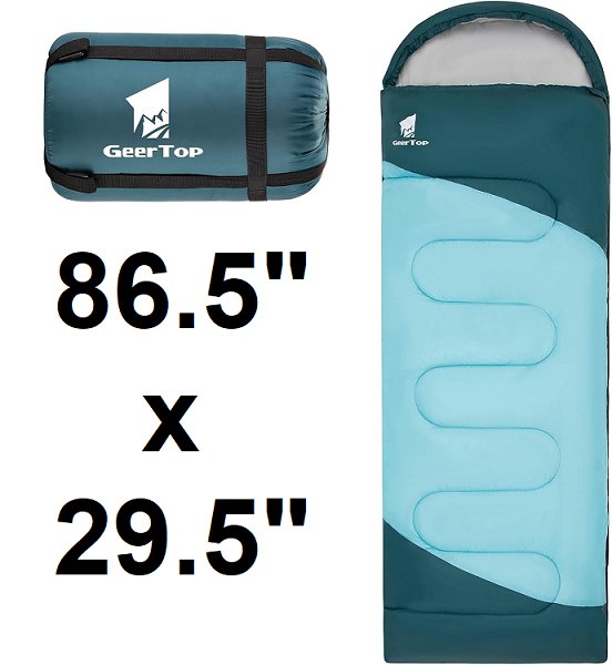 GEERTOP backpacking summer sleeping bag - right hand zipper - 86.5" x 29.5" - Mint Blue