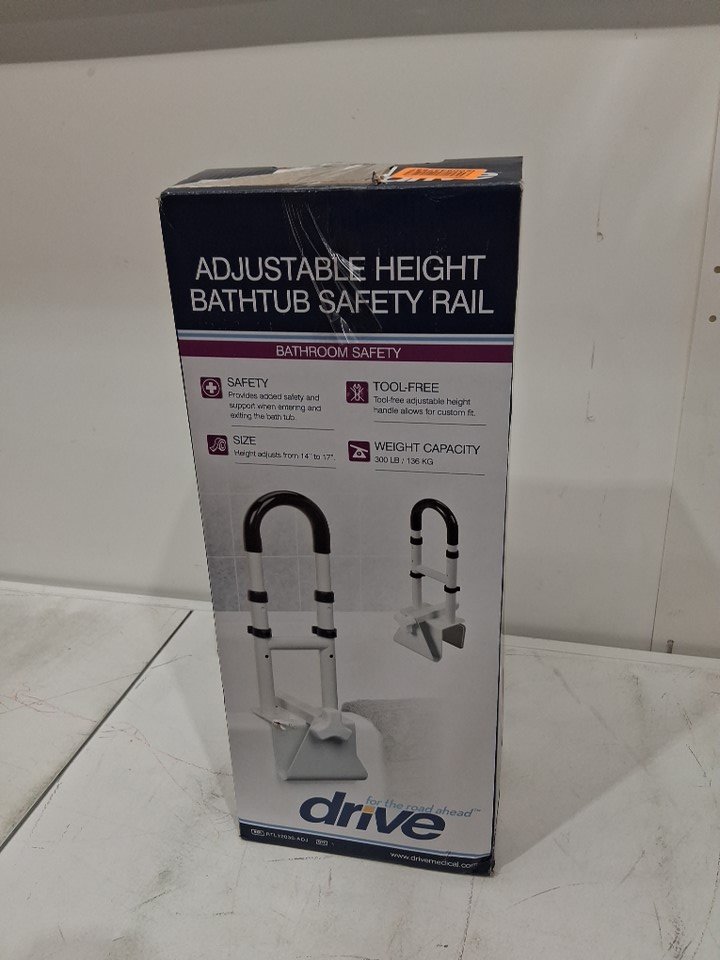 DRIVE MEDICAL ADJUSTABLE HEIGHT & WIDTH BATHTUB SAFETY RAIL - 14.5"-17" x 3"-7" - 300lbs Max - WHITE (MODEL: RTL12036-ADJ)
