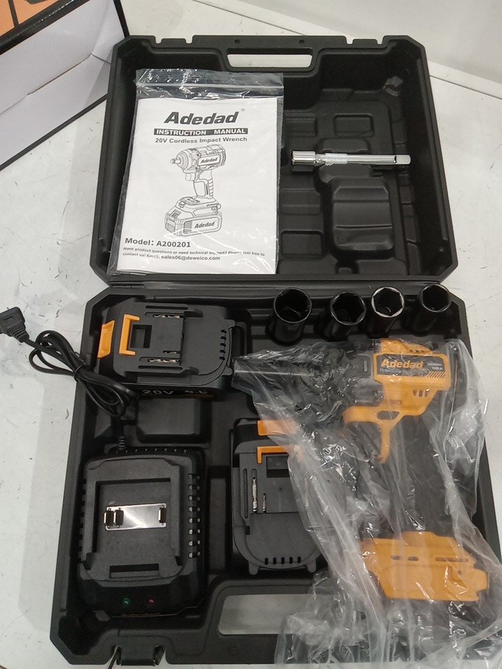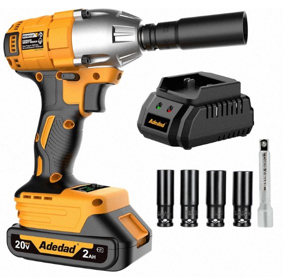 ADEDAD Power Impact Wrench 400N.m Impact Gun Cordless WITH BATTERIES - 17/19/20/21mm Sockets and 5 inch Extension Rod - 3000RPM - YELLOW (MODEL: A200201)