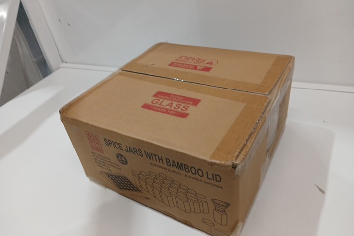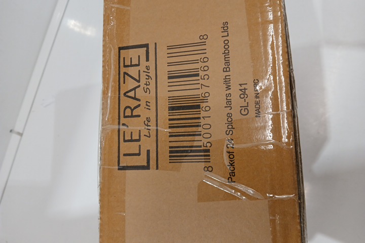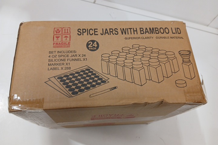 24PC Le'raze Glass Spice Jars with Various Labels Bamboo Shaker Lids and Funnel - 4oz (model: GL-941)