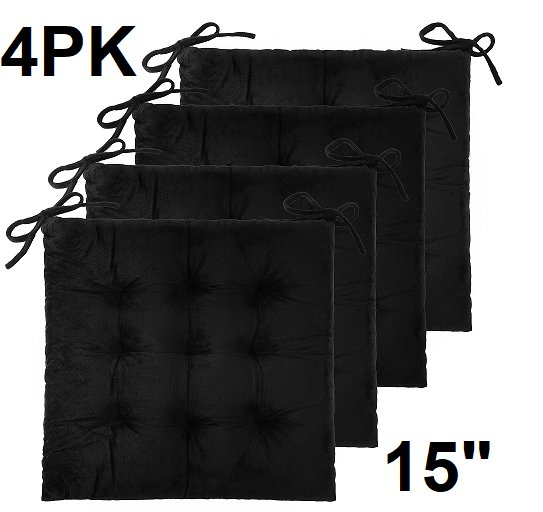 4pk UNBRANDED DINING CHAIR SEAT CUSHIONS - 15" x 15" - black